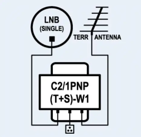 Sumator sugnału satelitarnego z konwentera LNB Single (LNB Monoblock Single) z sygnałem DVB-T.
