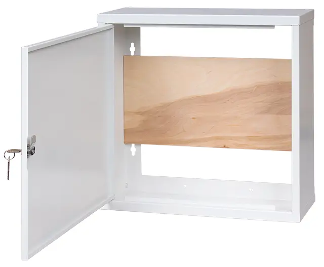 Do zestawu dołączamy płytę montażową - solidny panel wykonany z wodoodpornej sklejki o grubości 8 mm. Montaż dodatkowej ścianki ze sklejki, zdecydowanie ułatwia dowolne zagospodarowanie wewnętrznej przestrzeni obudowy i zapewnia wygodną instalację urządzeń.