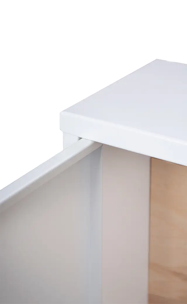 Dodatkowy komfort montażu zapewniają ukryte w narożnikach drzwiczek mocne i wytrzymałe zawiasy.