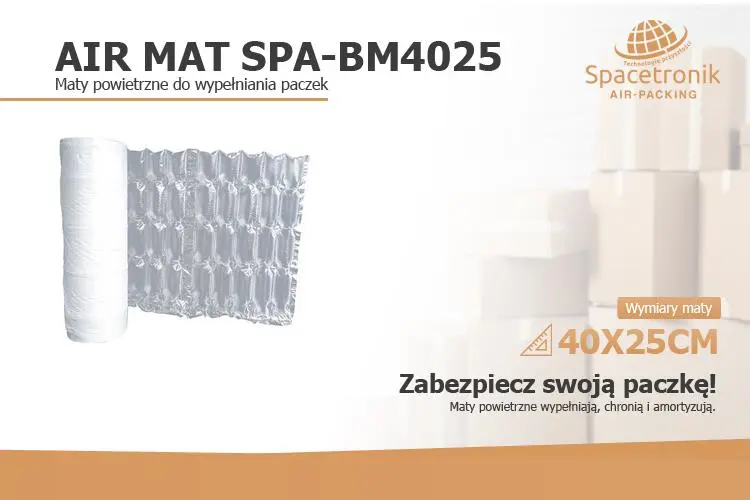 Wytrzymałe maty powietrzne Air Mat SPA-BM4025 są idealnym rozwiązaniem do wypełniania wszelkiego rodzaju przesyłek, w tym gabarytowych. Idealnie sprawdzą się jako wypełnienie pustej przestrzeni pozostającej w Twojej przesyłce. Dzięki niskiej cenie mat i znikomej ich wadze skutecznie zredukujesz koszty transportu. Maty są niezastąpione przy transportach medycznych, np. leków. Posiadają podział na komory powietrzne (4 w jednej kolumnie) i przez to są bardzo elastyczne, co pozwala na zginanie i dokładne owinięcie ich wokół transportowanych przedmiotów.