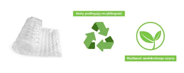Nie istnieje bardziej ekologiczne rozwiązanie niż zastosowanie wypełnienia powietrznego. Wytrzymałe materiały użyte do produkcji mat pozwalają na wielokrotne ich użycie, podlegają także recyklingowi.