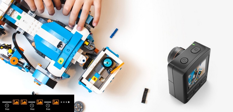 RĘCZNIE TWORZONA POKLATKOWOŚĆ - STOPMOTION Nowy tryb pracy kamery zwany StopMotion. Użytkownik ręcznie robi zdjęcia, kiedy chce i jakie chce. Zdjęcia zapisują się na "osi czasu filmu" a po zakończeniu nagrywania są składane w klip poklatkowy. Plik w formacie AVI, gotowy do edycji, przypomina pokaz slajdów.