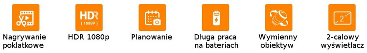 OBSŁUGA HDR - HIGH DYNAMIC RANGE Wyższa jakość nagrań przy gorszych warunkach oświetleniowych i atmosferycznych. Wyraźniejsze kolory, zdecydowanie lepsza głębia i odwzorowanie barw. Dodatkowo nagrywanie w rozdzielczości FullHD 1080p (1920x1080 px).
