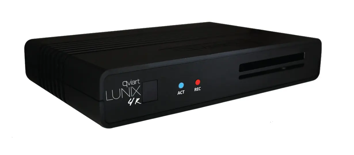 Qviart LUNIX 4K to mniejszy brat modelu LUNIX3 4K, utrzymany w stylistyce nowej gamy produktów. Jest to dekoder 4K 2160p, także pracujący na systemie Linux E2 (Enigma). Urządzenie korzysta z najnowszej kompresji obrazu H.265 HEVC, obsługuje HbbTV. Wyposażony został w 1GB pamięci RAM, 2 porty USB, czytnik kart. Krótko opisując, idealny dla osób ceniących sobie prostotę, elegancję i stabilność. LUNIX 4K oparty jest na systemie Linux, więc zalecamy go osobom bieglejszym w obsłudze tego typu dekoderów lub osobom lubiącym zabawę i konfigurowanie sprzętu elektronicznego.