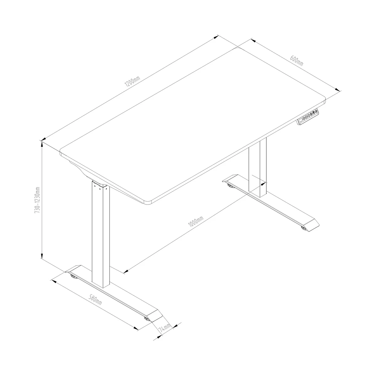 - 2-stopniowa konstrukcja kolumny - jednosilnikowy system - zakres regulacji 730 - 1230 mm (500 mm) - maksymalna nośność 100 kg - wymiary blatu 120 cm x 60 cm x 2 cm - materiał blatu: płyta wiórowa - maksymalna prędkość 25 mm/s - bardzo cichy napęd; poziom hałasu poniżej 50 dB - zasilanie 100 V - 240 V - prosty kontroler z przyciskami "góra" oraz "dół" - oprogramowanie zabezpieczające, w tym automatyczne wykrywanie awarii - stała prędkość, dokładna wysokość regulowana w granicach błędu 2 mm - bardzo łatwy montaż i obsługa - kolor biurka i stelaża: czarny
