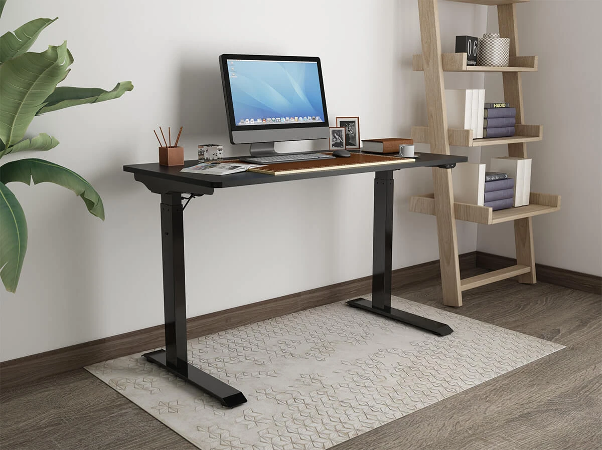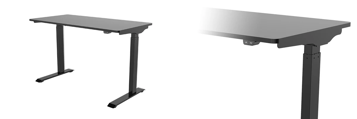 Stwórz ergonomiczne stanowisko pracy. Biurko regulowane elektrycznie Moris to ekonomiczne rozwiązanie. Reguluj wysokość blatu w zakresie 730-1230 mm i pracuj na na stojąco lub siedząco. Blat o wymiarach wymiarach 120 cm x 60 cm x 2 cm. Kolor czarny.