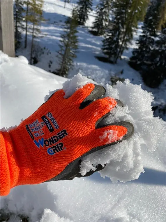Wonder Grip WG-380 Thermo to podwójna powłoka lateksowa i zimowa rękawica z pętelkową wyściółką z akrylu o grubości 10. Podszewka z drapanego akrylu sprawia, że dłonie są cieplejsze w niskich temperaturach. Oferując odporność na zimno zgodnie z normą EN511 poziom 1, WG-380 Thermo może być stosowany w środowiskach o niskiej temperaturze.