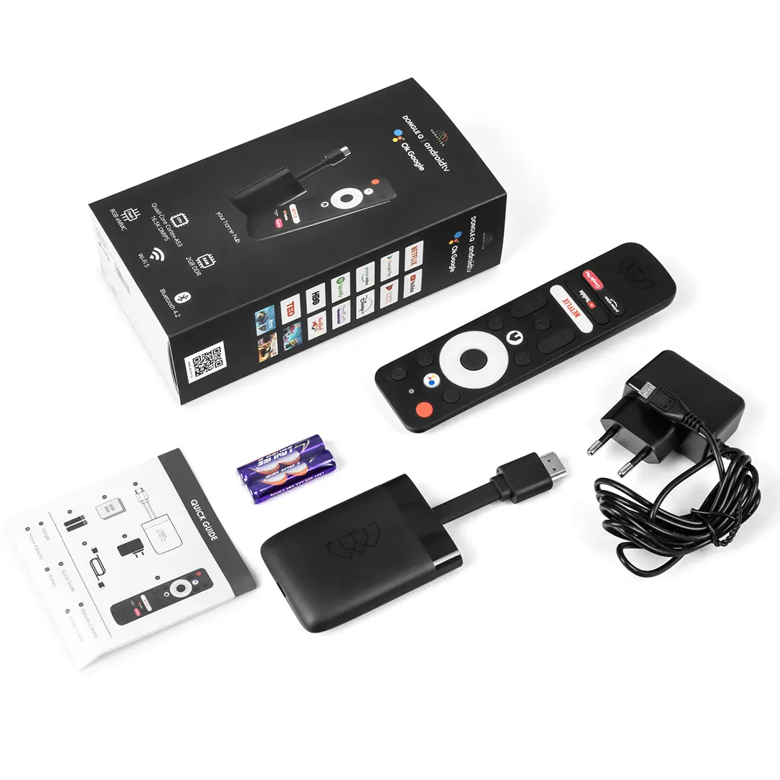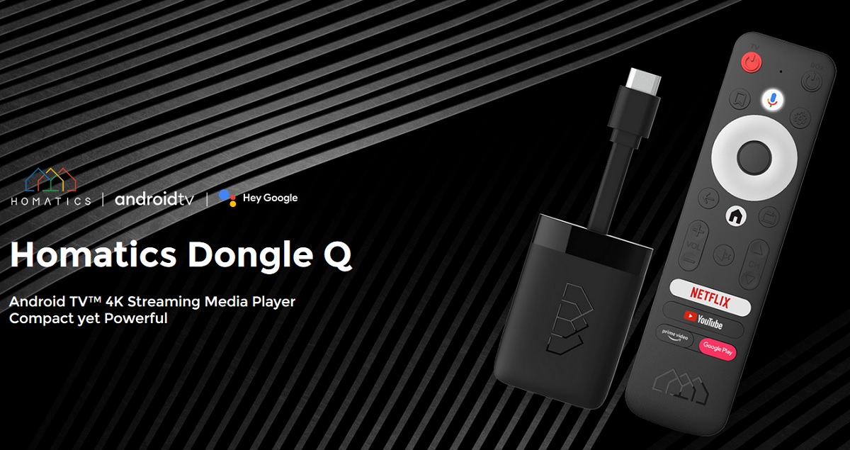 Homatics DONGLE Q to przystawka Android SMART TV 4K na systemie oficjalnym Android 10 z WiFi 2,4G / 5G, pilot Google Assistant, QUAD Amlogic S905Y2, 2 GB RAM DDR, 8 GB eMMC Flash