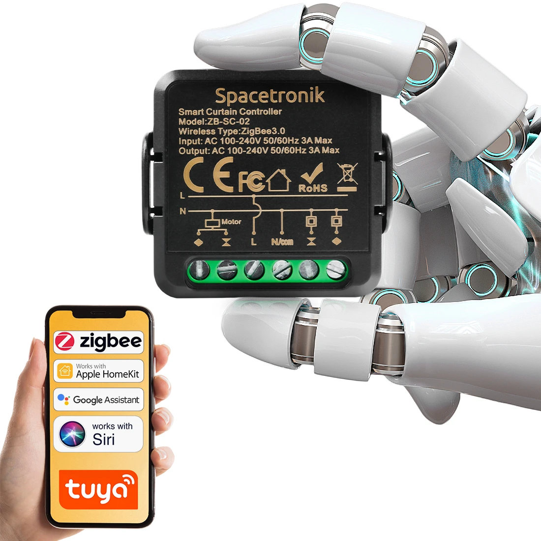 Mini kontroler do rolet dopuszkowy Zigbee 3.0 Tuya Spacetronik ZB-SC-02