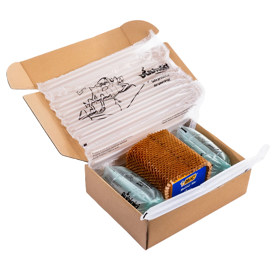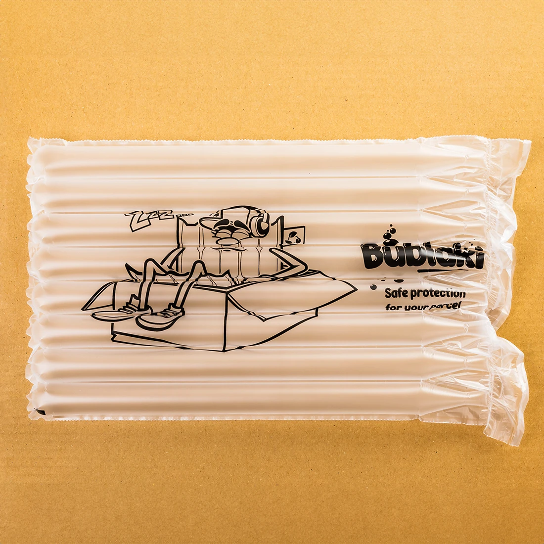 Nasza mata powietrzna jest w pełni kompatybilna z maszynami Bublaki do produkcji wypełniaczy powietrznych. Dzięki temu możesz szybko i łatwo napompować maty bezpośrednio na stanowisku pakowania, co znacznie przyspiesza proces przygotowania przesyłek. To rozwiązanie jest nie tylko wygodne, ale także ekonomiczne. Ponieważ mata przed napompowaniem zajmuje minimalną ilość miejsca, oszczędzasz na kosztach magazynowania. Dodatkowo, lekka konstrukcja wypełniacza nie wpływa na wagę przesyłki, co przekłada się na niższe koszty transportu. Wybierając naszą matę, inwestujesz w efektywność i oszczędność, które doceni zarówno Twój zespół, jak i klienci.