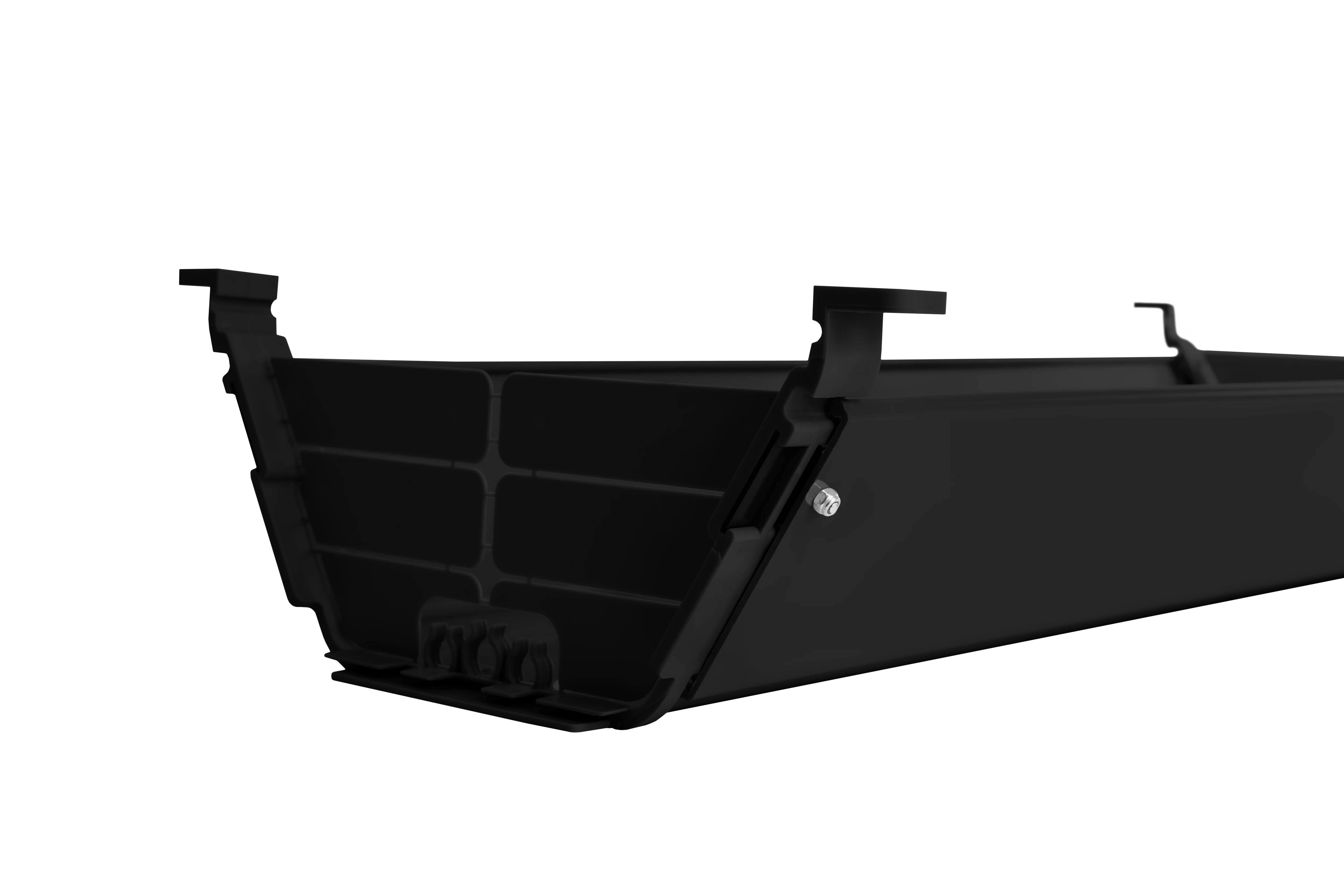 Organizer SPK-524B możesz wydłużyć, łącząc kilka segmentów w jeden długi kanał kablowy. Specjalne zakończenia z otworami montażowymi umożliwiają solidne i stabilne połączenie bez luzów i przesunięć. Rozwiązanie idealne do większych stanowisk lub biurek typu bench.