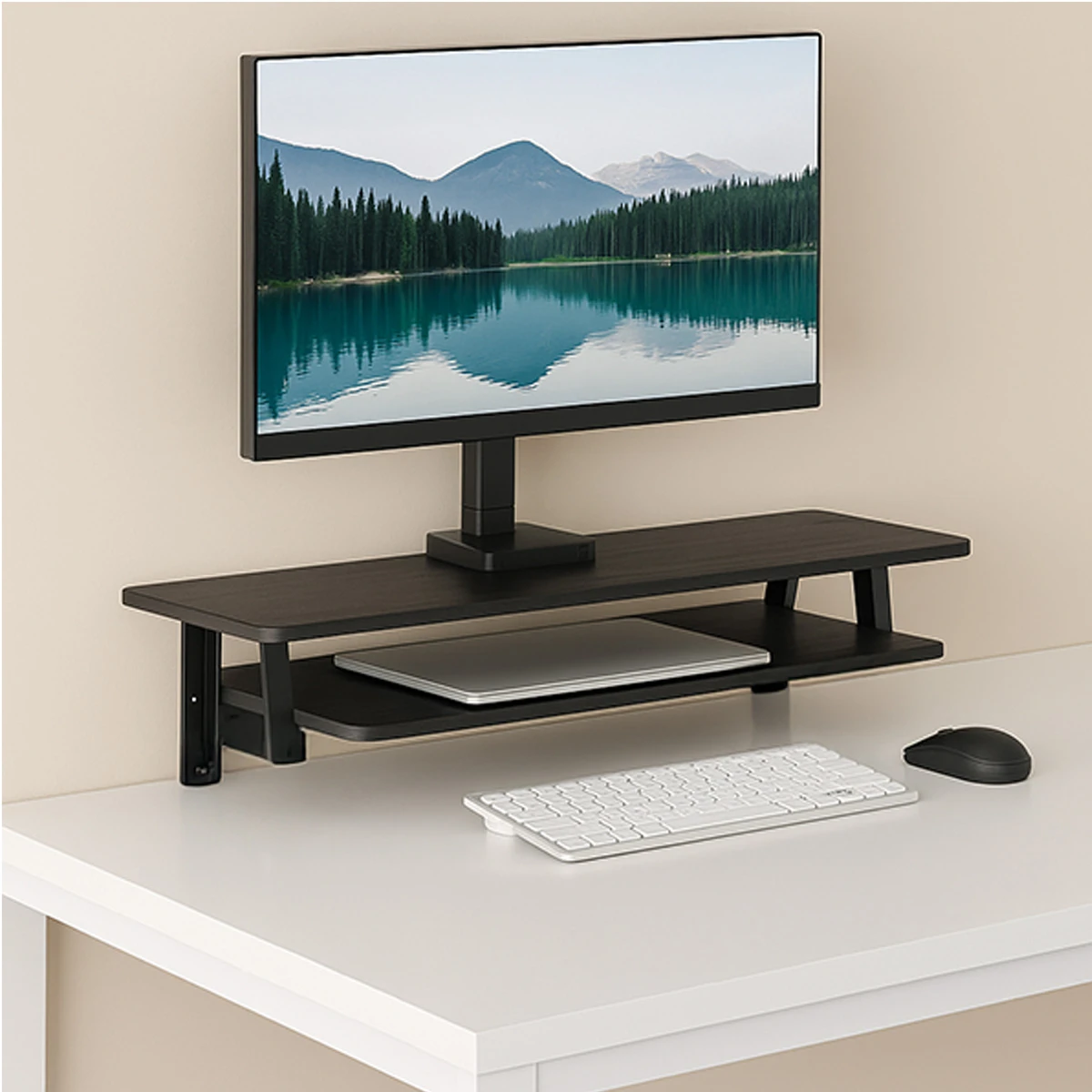 W celu umożliwienia Ci jak największego komfortu pracy półka Spacetronik HUGEL 14 zapewnia Ci aż dwa poziomy. Dzięki temu na pierwszym będziesz mógł trzymać np. monitor i laptopa, a na dolnej telefon, tablet, książki czy też notesy. Z łatwością będziesz w stanie przechowywać na niej wszystko to, co jest Ci potrzebne do komfortowej pracy.