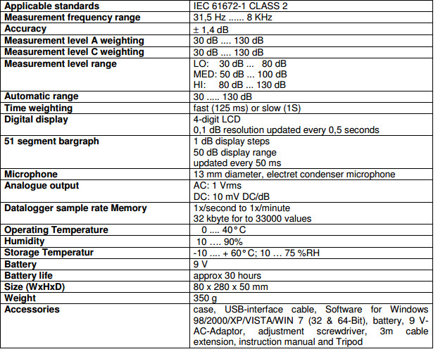 Miernik poziomu dźwięku cyfrowego 4-cyfrowy, wielofunkcyjny wyświetlacz LCD (58 x 44 mm), rejestrator danych przeznaczony jest do kontroli jakości hałasu, zapobieganiu chorobom, wszystkich rodzajów pomiarów dźwięków środowiskowych, stosowany do pomiaru dźwięku w fabrykach, szkołach, biurach, gospodarstwach domowych, itp.